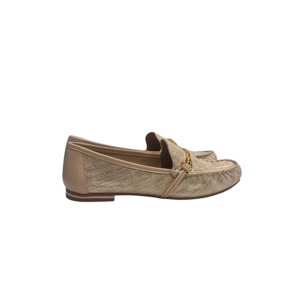Descubra o conforto e a sofisticação com o mocassim Luz da Lua, confeccionado em couro Solana, conhecido por sua maciez e resistência. A cor nude proporciona versatilidade, combinando facilmente com diversas opções de vestuário, perfeita para ocasiões casuais e formais. O design do cabedal é aprimorado com uma elegante fivela dourada, adicionando um toque de distinção ao calçado.