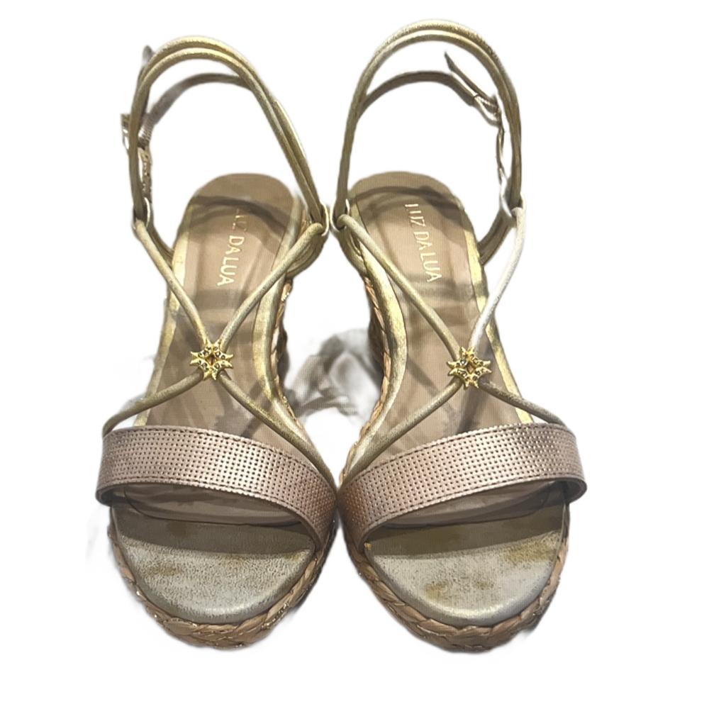Sandália Anabela Lux da Lua, confeccionada em couro tramado, destaca-se pelo design sofisticado e detalhes cuidadosamente elaborados. O salto alto, revestido em cordas, oferece conforto e estilo, ideal para ocasiões elegantes. Com acabamento na cor Solara Ouro, garante um visual atraente e moderno. Versátil, harmoniza com diversos looks, conferindo um toque de elegância a qualquer produção. Item essencial no closet de quem busca aliar tendência e conforto. Produto disponível para entrega em todo o Brasil.