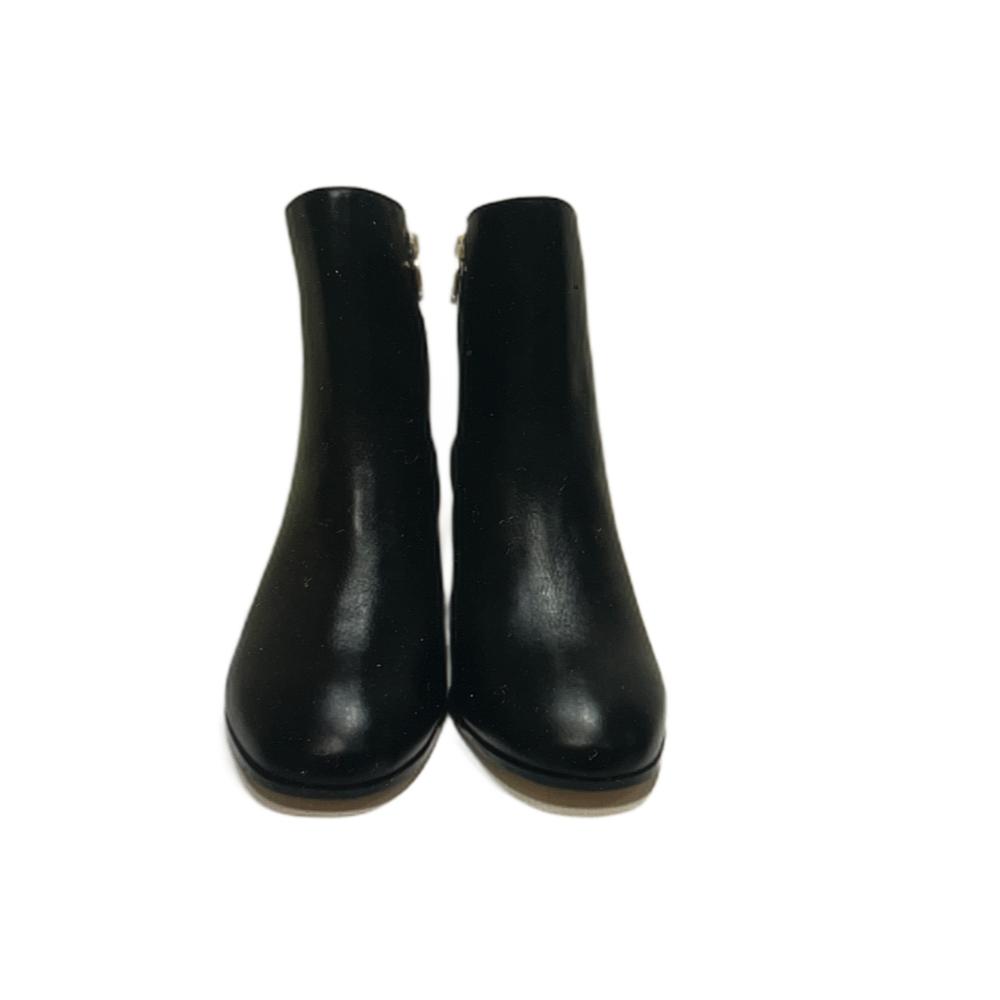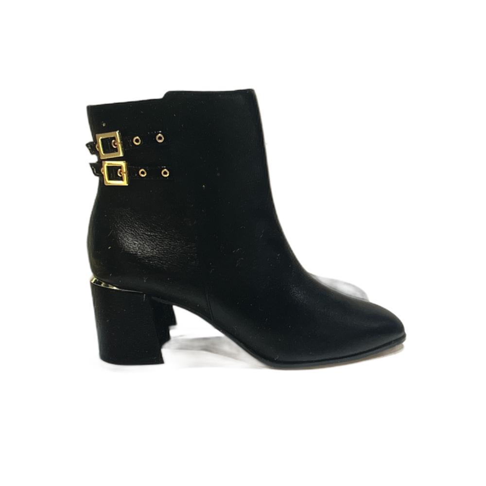 A Bota Couro Preto com Fivela da Luz da Lua é ideal para quem busca conjugação entre elegância e praticidade. Com salto grosso de 6 cm, garante estabilidade e conforto, sendo perfeita para uso prolongado em diversas ocasiões. O design incorpora detalhe em fivela no verniz Verona, adicionando um elemento contemporâneo ao calçado.