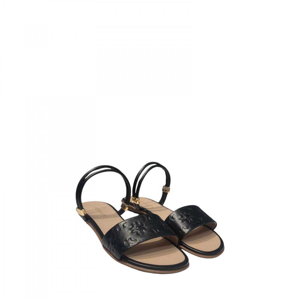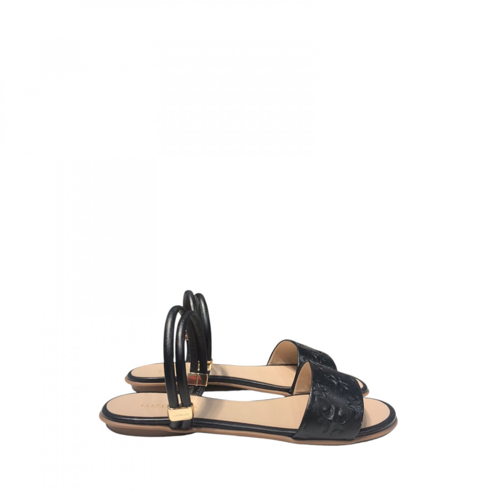 Luz da Lua Sandalia Rasteira Preta Logomarca