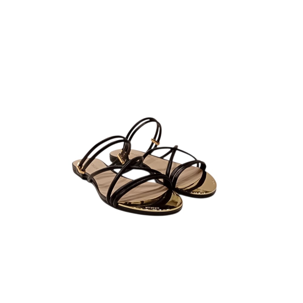 Luz da Lua Sandalia Rasteira Preto Tiras